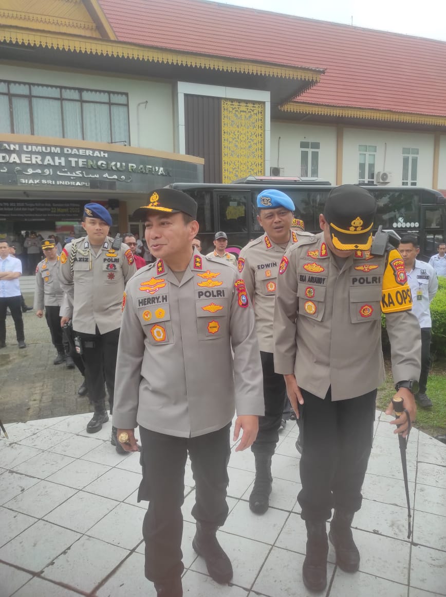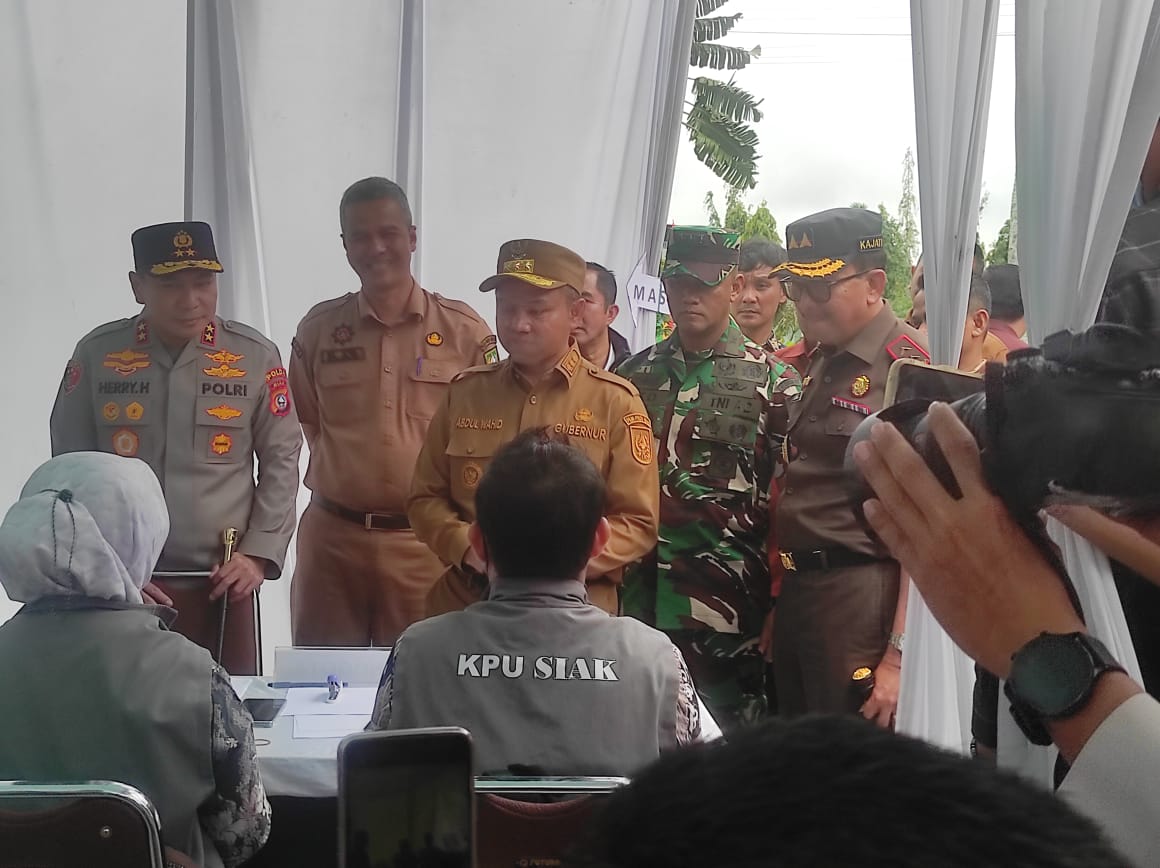 Rombongan Forkopimda yang turut hadir meliputi Kapolda Riau, Irjen Pol Dr.Herry Heryawan S.I.K, M.H, M.Hum, Kajati Riau, Bpk Akmal Abbas SH, MH, Kasrem 031/WB, Kol Kav Eko Agus Nugroho S.I.P, M.Si, serta Karo Ops Polda Riau, Kombes Pol Ronny Lumban Gaol. Kunjungan ini bertujuan memastikan PSU berjalan lancar, aman, dan tertib di sejumlah titik strategis di Kabupaten Siak.
