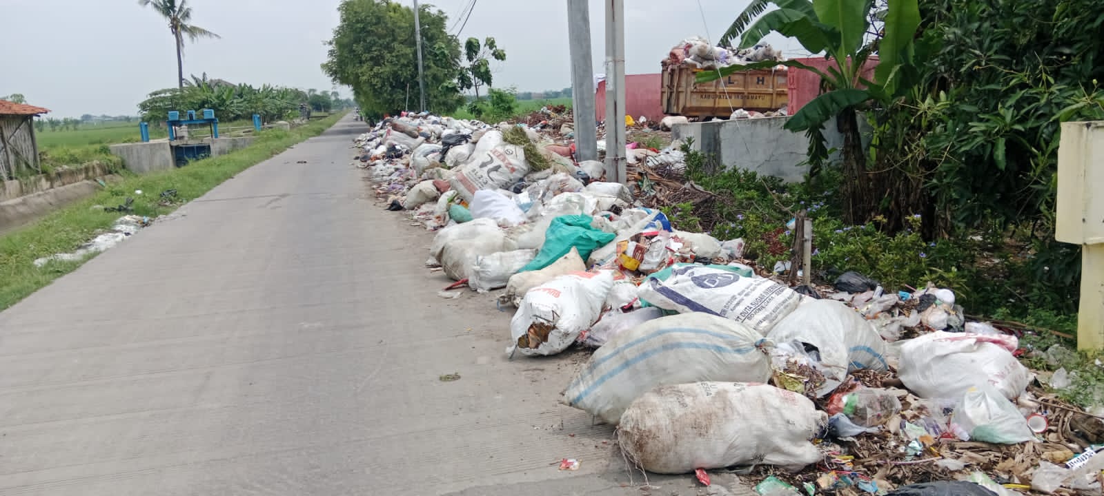 Indramayu-Jabar, MediaLiputan6.com Tumpukan Sampah terlihat jelas di sepanjang jalan toang yang berada wilayah desa Kapringan, kecamatan krangkeng, kabupaten Indramayu,Jawa Barat.