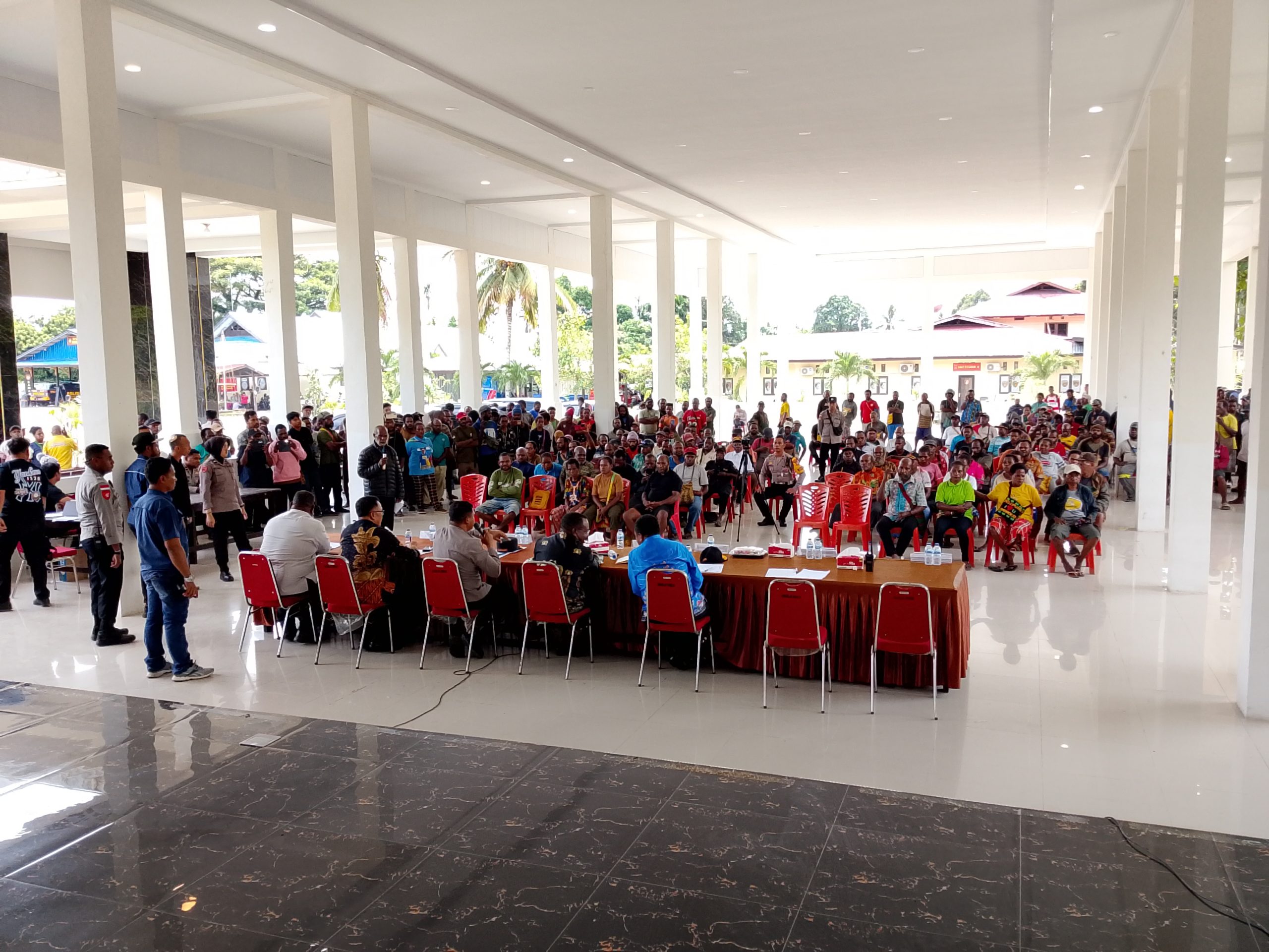Dalam sambutannya, Kapolres Nabire menekankan pentingnya menyelesaikan persoalan dengan kepala dingin. Ia mengajak seluruh pihak untuk mengesampingkan emosi dan lebih mengedepankan hati nurani serta kebijaksanaan dalam menyampaikan pendapat.