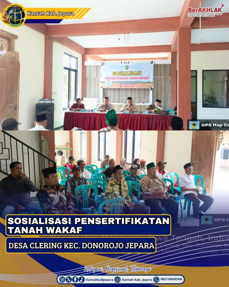 Kehadiran dari berbagai narasumber untuk menegaskan dan memberikan sosialisasi kepada masyarkat Desa Clering Kec. Donorojo Kab. Jepara terkait adanya dukungan upaya sertipikasi tanah wakaf yang menjadi bagian dari program strategis nasional saat ini. Dalam pemaparannya, dijelaskan bahwasanya “Tanah wakaf adalah bentuk ibadah sosial yang memiliki status hukum suci. Kemenag bukan sekadar institusi administratif, melainkan pemegang amanah umat agar tanah wakaf tidak dialihkan atau digunakan tanpa perlindungan hukum dan syar’i yang memadai,”.
