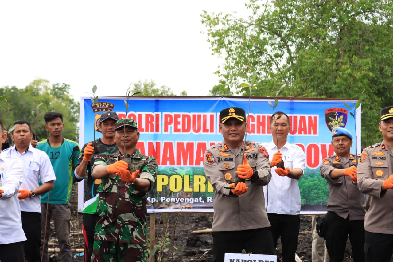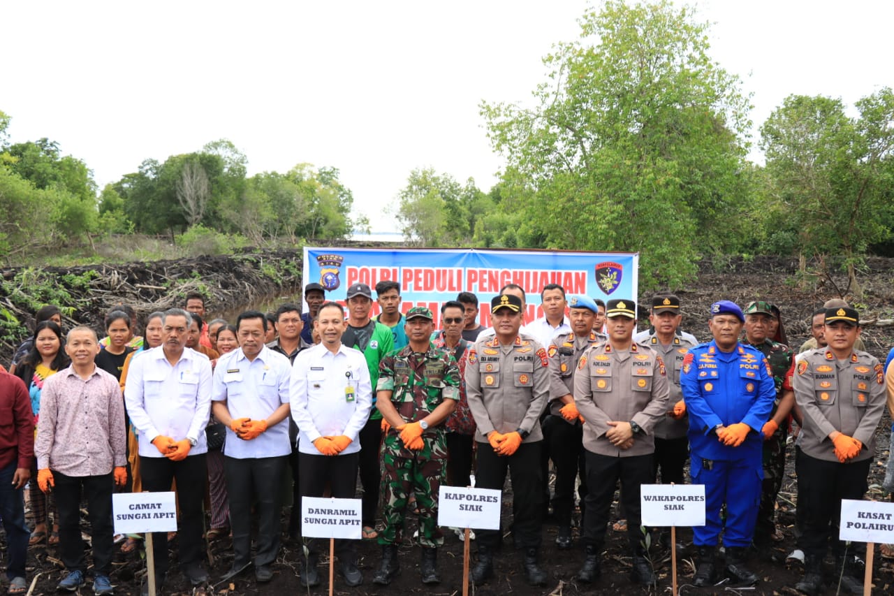 Dalam upaya memperkuat pengamanan perairan sekaligus menjaga kelestarian lingkungan, Polres Siak meresmikan Pos Sandar Polairud Tanjung Pal di Kampung Penyengat, Kecamatan Sungai Apit, Rabu (13/8/2025). Acara peresmian dipimpin langsung oleh Kapolres Siak, AKBP Eka Ariandy Putra, S.H, S.I.K, M.Si, dan dilanjutkan dengan penanaman bibit pohon mangrove sebagai bagian dari program Green Policing.