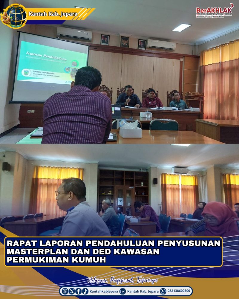 Jepara, 12 Agustus 2025 Kantor Pertanahan Kabupaten Jepara menghadiri Rapat Laporan Pendahuluan Penyusunan Masterplan dan DED Kawasan Permukiman Kumuh Desa Kancilan di Kantor Dinas Perumahan Rakyat dan Kawasan Permukiman Kabupaten Jepara.