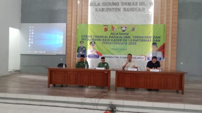 Pelatihan cegah tangkal Radikalisme, Terorisme dan Intoleransi bagi Kader Dai Kamtibmas dan peduli Dhuafa 2025, digelar di Gedung Ormas Islam Soreang, Sabtu ( 30/8/25 ).