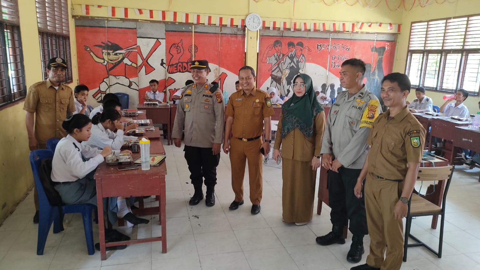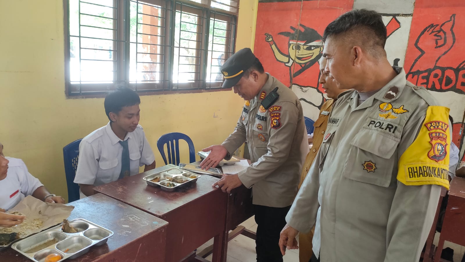 23 September 2025- Program Makanan Bergizi Gratis (MBG) resmi perdana didistribusikan di SMKN 1 Tualang, Senin (22/9/25). Kapolsek Tualang yang diwakili Plh. AKP Timbul S. Lingga bersama Bhabinkamtibmas Kampung Maredan Aipda Azwan Har dan Bhabinkamtibmas Kampung Perawang Barat Aipda Hendri Hidayat, S.H, hadir langsung memastikan pendistribusian berjalan lancar.