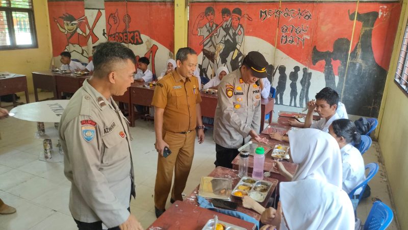 Dalam kegiatan ini, petugas juga melakukan pengecekan isi omprengan makanan yang diberikan kepada siswa, guna memastikan kualitas dan kelayakan konsumsi diantaranya Nasi, sayur, ayam, tempe dan buah. “Pemeriksaan ini penting agar makanan yang dibagikan benar-benar layak dan bergizi bagi para pelajar,” ujar AKP Timbul.