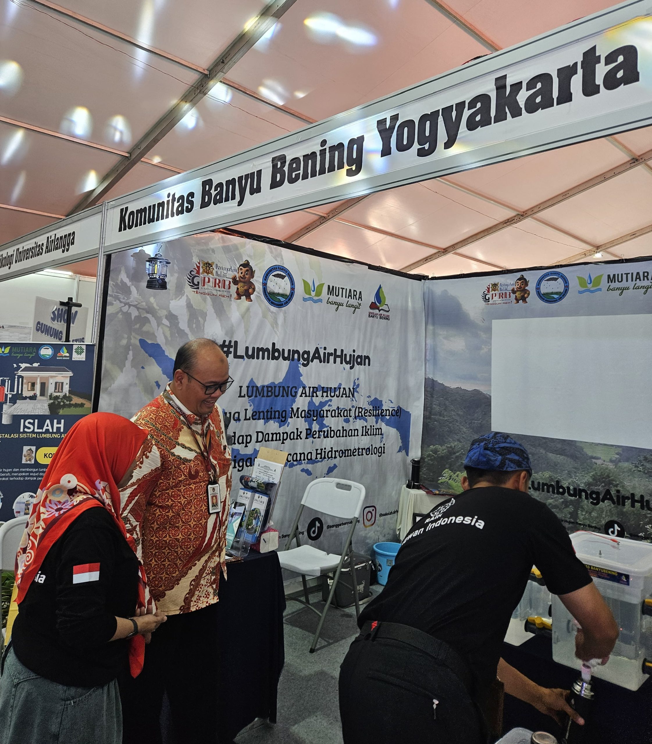 Meriahnya Pameran Kebencanaan dalam rangka Peringatan Bulan Pengurangan Risiko Bencana (PRB) tahun 2025 semakin semarak dengan hadirnya inovasi pemanfaatan air hujan. Stand Banyu Bening menjadi salah satu pusat perhatian pengunjung, yang antusias mengamati hingga mencoba langsung sajian air hujan hasil olahan metode ISLAH (Instalasi Lumbung Air Hujan).
