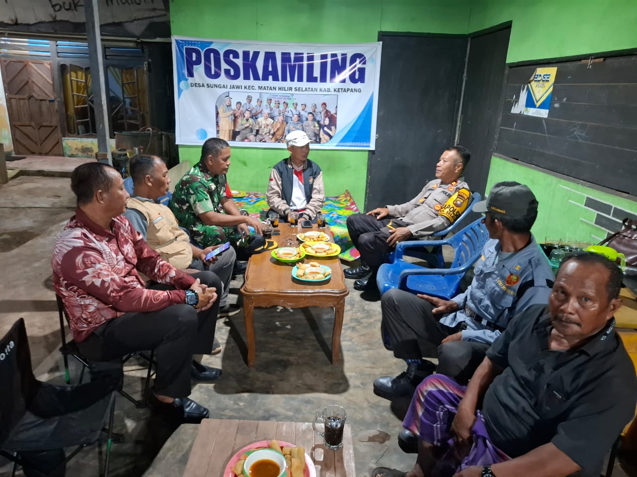 Dalam rangka meningkatkan sinergitas dan menjaga situasi keamanan dan ketertiban masyarakat (Kamtibmas), Kapolsek Matan Hilir Selatan, IPTU Jumadi Hutabarat, S.H., bersama Danramil Matan Hilir Selatan, Peltu Baharudin, dan Camat Matan Hilir Selatan, Abdulrani, S.Pd., melaksanakan kegiatan sambang ke Pos Keamanan Lingkungan (Pos Kamling) yang terletak di Desa Sungai Jawi, Kecamatan Matan Hilir Selatan, Kabupaten Ketapang, Sabtu 18 Oktober 2025.