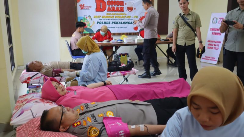 Polres Pekalongan – Polda Jateng – Medialiputan6.com. Dalam rangka menyambut Hari Jadi Humas Polri ke-74 tahun 2025, Polres Pekalongan menggelar kegiatan bakti sosial donor darah serentak di aula Presisi Mapolres Pekalongan, Rabu (22/10/2025). Acara ini digelar sebagai bentuk kepedulian sosial dan kemanusiaan dengan mengusung tema “Polisi Humanis, Harapan Masyarakat.”
