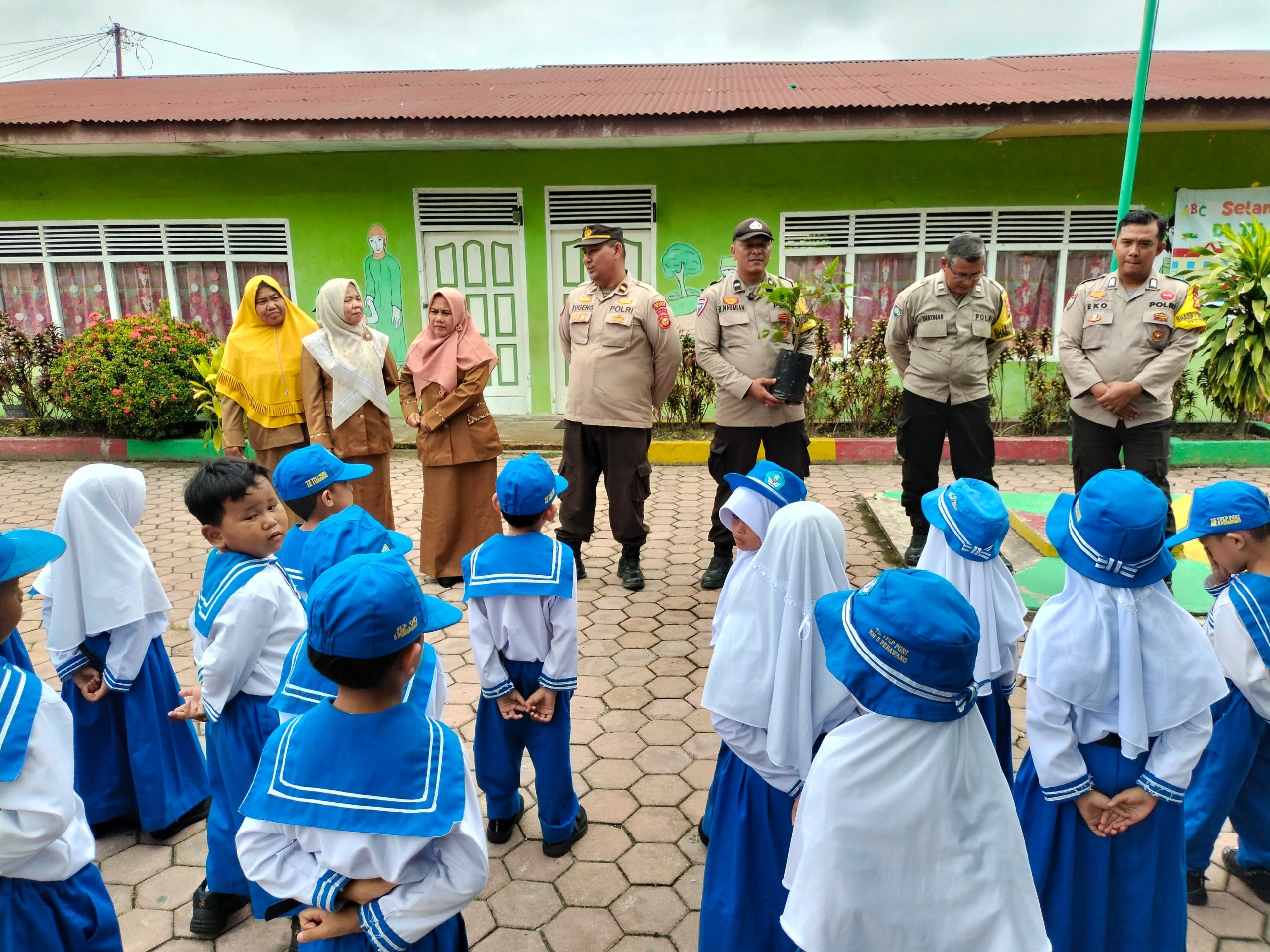 Kepala Sekolah TK YPLP-PGRI, Candra Neli, S.Pd, menyampaikan apresiasi kepada Polsek Tualang atas kepeduliannya terhadap pendidikan lingkungan bagi anak-anak.