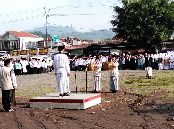 Mengusung tema “Mengawal Indonesia Merdeka Menuju Peradaban Dunia”, upacara ini diikuti ratusan peserta dari kalangan santri, guru, tokoh agama, dan perwakilan berbagai instansi. Para peserta laki-laki tampak gagah mengenakan busana adat santri berupa sarung hitam, baju putih lengan panjang, dan kupiah hitam, menambah kesakralan acara.
